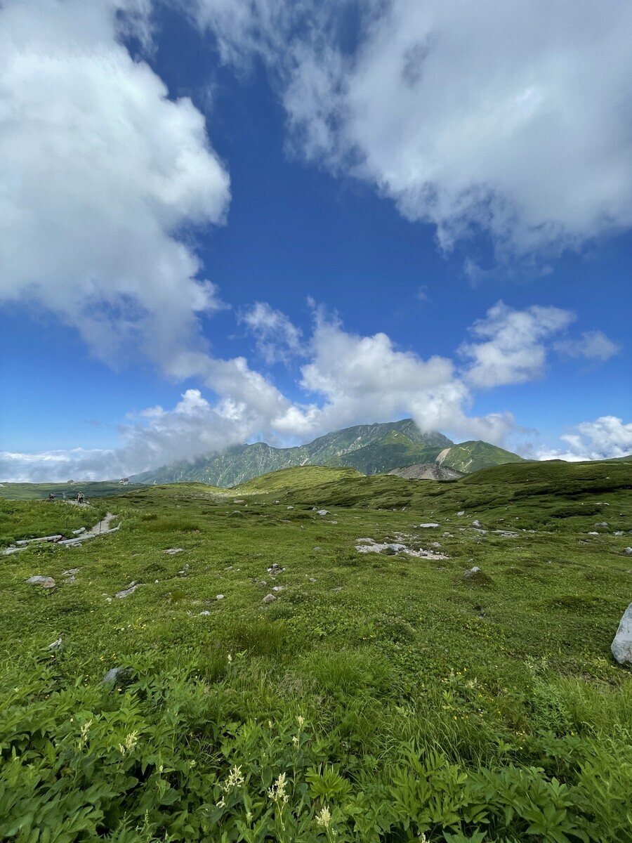 ケーブルカーとロープウェイを乗り継いて室堂に到着。標高約2500mということで流石の涼しさとダイナミックな景色に大満足。なお、雪の壁もない季節ということで富山側には降りずに、室堂で付近を軽く散策してホテルに戻ることにした。